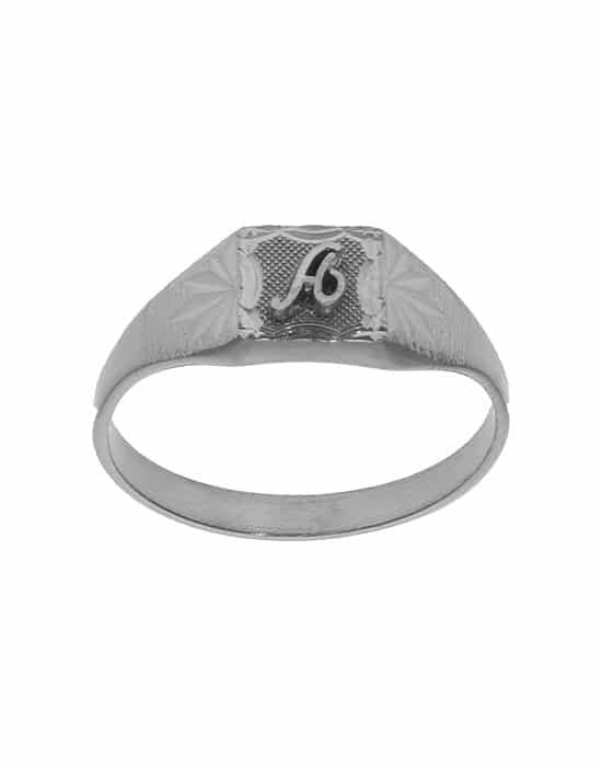 Disponible en or jaune ou or blanc, et déclinée en 9K ou 18K, cette chevalière pour femme se personnalise avec une initiale soudée au centre du plateau, complétée par une gravure intérieure, pour un bijou unique, intime et raffiné.